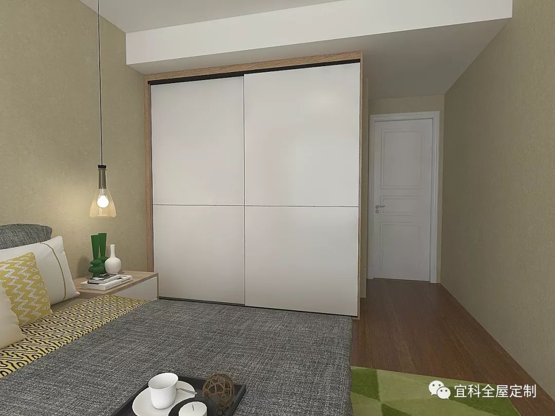 从墙纸的淡雅、迪萨衣柜的原始木纹