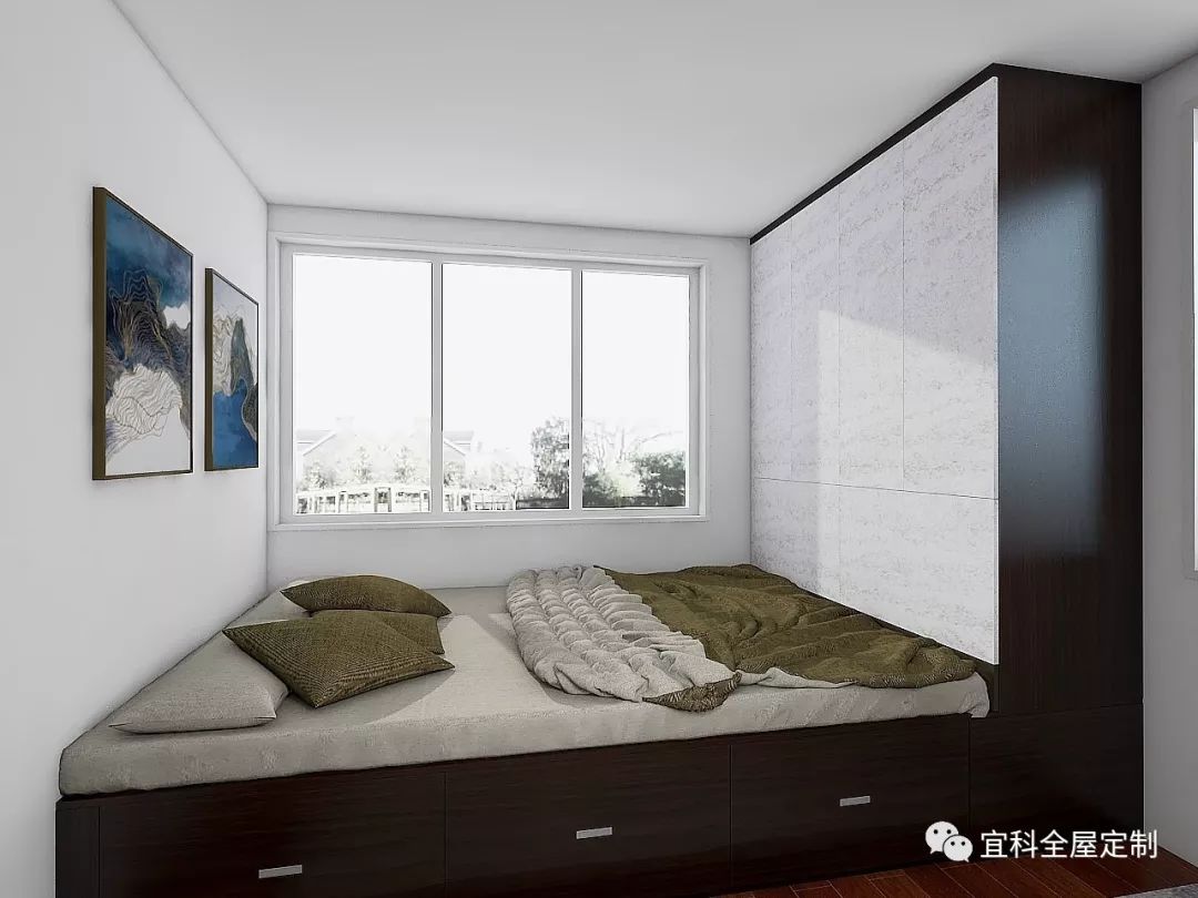 小房间可以因地制宜地做一些多功能设计榻榻米,或多种组合形式的柜体,实现书卧一体的空间。儿童房则可以用组合柜体形式,打造小孩休息、学习、娱乐一体化的多功能空间。